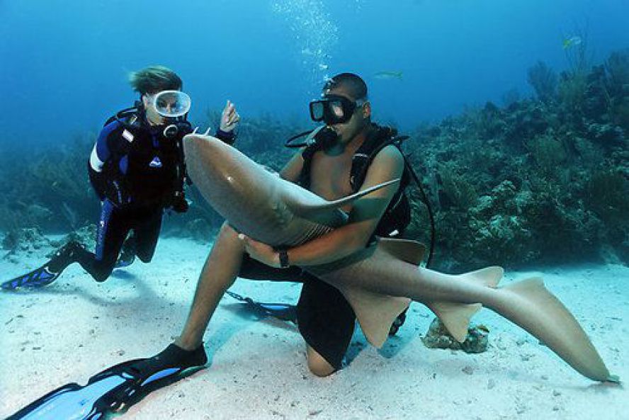 Rekiny z Belize są specjalnie nęcone do celów turystycznych. Nie ma się co obawiać :)