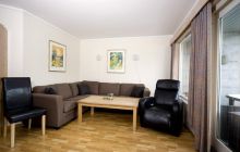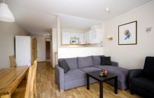 Zakwaterowani będziemy w dwóch znajdujących się obok siebie apartamentach. W każdym apartamencie znajdują się sypialnie, salon, w pełni wyposażona kuchnia, toalety. oraz przestronny taras.