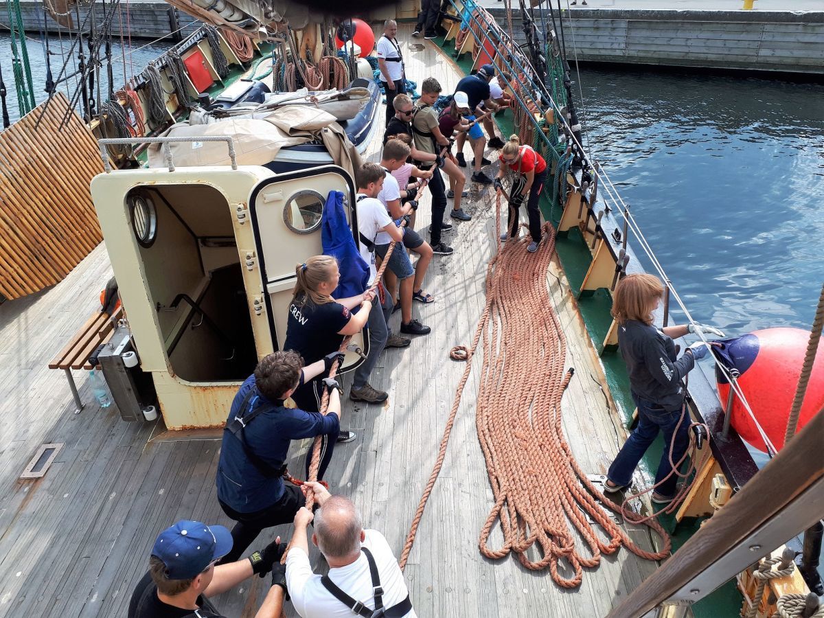 Po podzieleniu na wachty i przydzieleniu koi, odbędzie się szkolenie z zakresu zasad dotyczących żeglugi oraz pracy na żaglowcu w tym obsługi żagli i tego samego dnia wychodzimy w morze. Na początku rejsu weźmiemy udział w paradzie żaglowców, która odbywa się na zakończenie Tall Shipów i obierzemy kurs na jeden z portów wyspy Bornholm. Do Gdyni wpływamy 08.08.2021r, zmustrowanie o godz. 10:00.