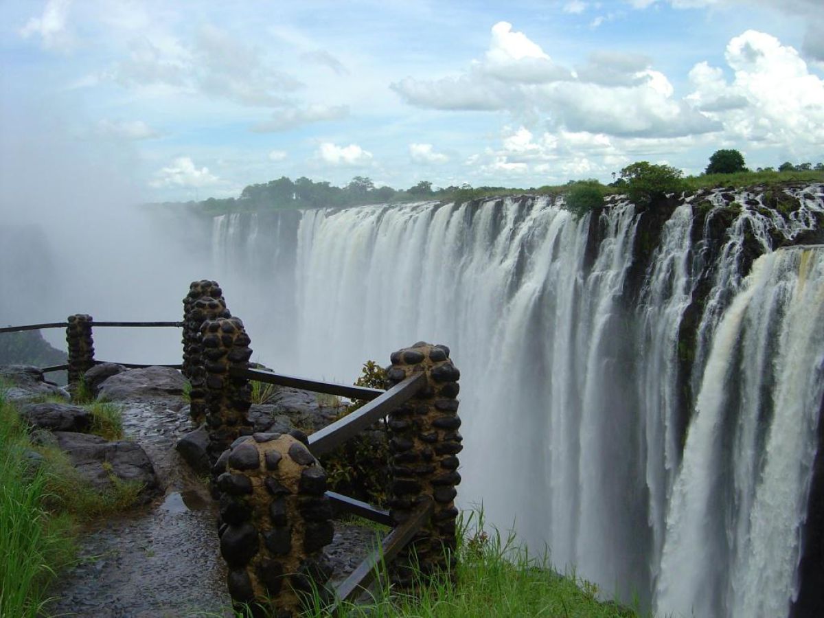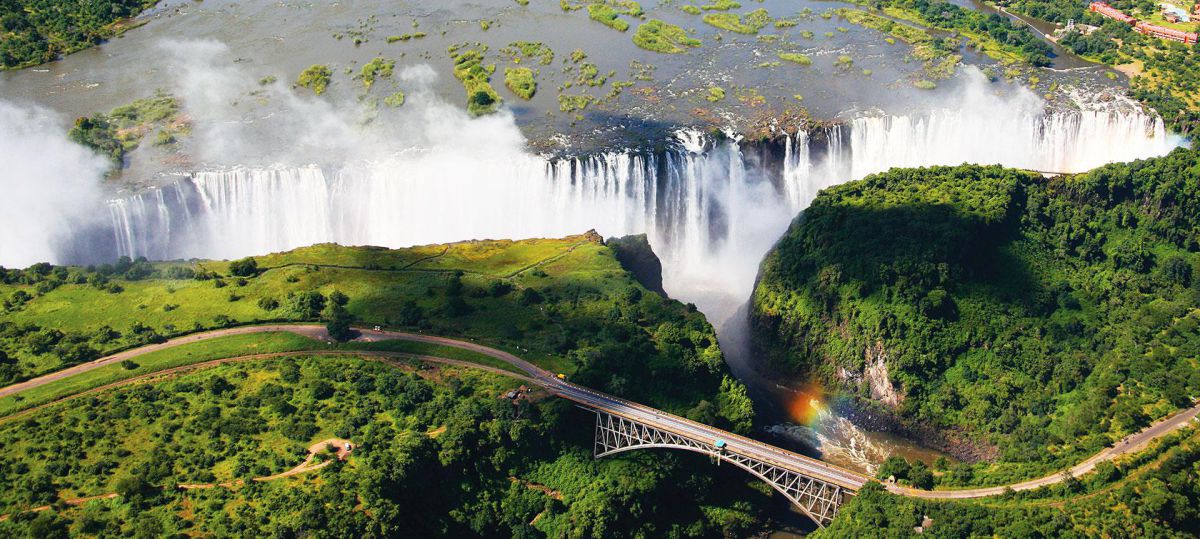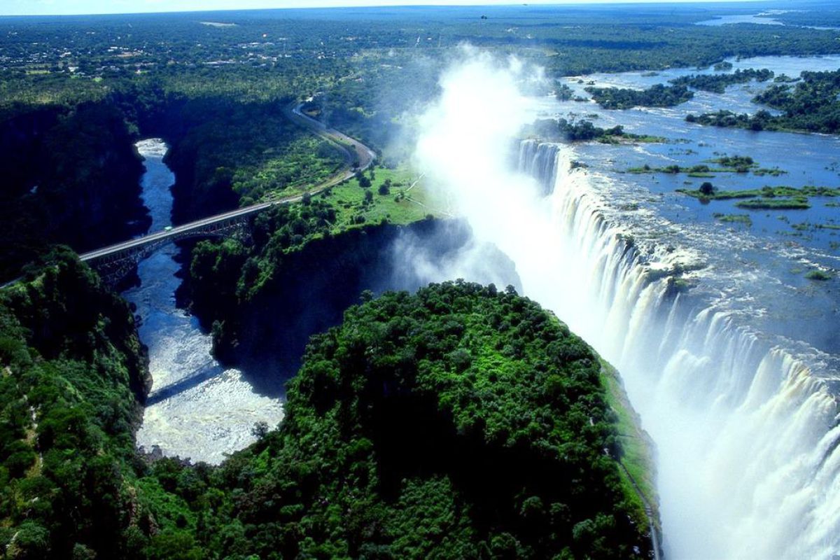 Po śniadaniu transfer na lotnisko i przelot do Wodospadów Wiktorii w Zimbabwe. Jeden z najwspanialszych wodospadów świata, Wodospad Wiktorii, leży na rzece Zambezi, która stanowi granicę między Zambią a Zimbabwe. W najszerszszym miejscu wodospad mierzy 1690 m. Już w odległości około 50 km od wodospadu dostrzec można unoszącą się w powietrzu na wysokość 300 m chmurę pyłu wodnego. Z daleka słychać łoskot przetaczającej się wody. Tubylcy nazywają wodospad Mosi-oa-Tunja co znaczy „dym który grzmi”. Wodospad Wiktorii zaliczany jest do 7 cudów natury świata, znajdujących się na liście Światowego Dziedzictwa UNESCO. Wizyta w rezerwacie Wodospadów Wiktorii od strony Zimbabwe. Spacerujemy ścieżką, która wiedzie do kolejnych punktów widokowych. Szlak prowadzi od „Diabelskiej Katarakty” do najdalej wysuniętego tarasu widokowego zwanego „Niebezpiecznym Punktem”, gdzie Zambezi wypływa ze szczeliny wodospadu poprzez kolejne 7 przełomów w bazaltowym plateau. Unosząca się stale nad wodospadem chmura wody stworzyła pośród suchej sawanny wilgotną, wiecznie zieloną oazę, las deszczowy z drzewami hebanowymi, figowcami, dzikimi oliwkami i palmami daktylowymi, licznymi lianami, pnączami i efektownymi paprociami. Zwiedzanie kończymy przy moście łączącym brzegi Zimbabwe i Zambii, gdzie przybywają śmiałkowie z całego świata, by zawieszeni na linie, z okrzykiem „bungee!” spadać 111 metrów w dół. Wieczorem rejs o zachodzie słońca przy drinkach alkoholowych (wliczone w cenę) po rozlewiskach rzeki Zambezi. Urzekający zachód słońca wśród kąpiących się słoni i rozleniwionych hipopotamów ziewających ostentacyjnie na widok zbliżającego się statku pozostanie na pewno we wspomnieniach na długo. Kolacja i nocleg w hotelu Victoria Falls Rainbow Hotel 3* w Wodospadach Wiktorii.