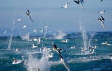 Nurkowania z sardynkami to całodzienna wycieczka dużym RIBem z lunchem i napojami w pakiecie wyjazdu. Przygotowani w sprzęt nurkowy lub/i snorkeling naprowadzani przez inne łodzie, samoloty oraz śmigłowce będziemy ganiać za sardynkami aby zobaczyć to, jak rozprawiają się z nimi inne zwierzaki. Widowisko przy odrobinie szczęścia może być jednym z największych w waszej historii przygód podwodnych. To powinno na nas robić olbrzymie wrażenie jeszcze przed wejściem do wody to żerujące wieloryby które bardzo często będą się wynurzać w naszej okolicy wyłapując sardynki z głębi oceanu. Co więcej, rejony w których sardynki są najbliżej lustra wody będzie bombardowany jak podczas wojennego nalotu przez ptaki uderzające w lustro wody z olbrzymią prędkością. Bombardowaniom ptaków powinny towarzyszyć również wynurzające się od czasu do czasu delfiny. Jeśli dana "kula" sardynek będzie się utrzymywać na tyle długo aby wskoczyć do wody z pełnym sprzętem pod wodą będziemy mogli zobaczyć prawdziwy mix rekinów, delfinów, żaglic, tuńczyków oraz innych przedstawicieli oceanu chcących wyłapać jak największą ich ilość. Konkurencja kto zje najwięcej sardynek jest dość duża ! :) Trzymamy kciuki już teraz aby zawsze, każdego dnia być we właściwym miejscu i porze aby zobaczyć to czego BBC nie udało się sfilmować :)