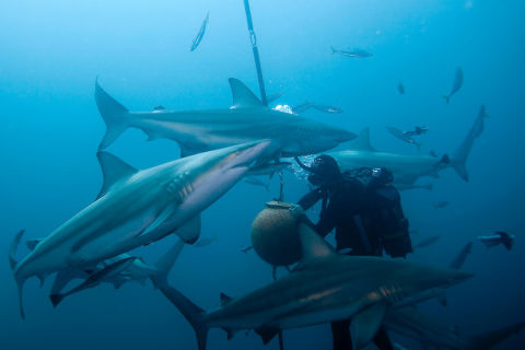 Tym razem będą to 4 dni nurkowań rafowych z jednym dniem nurkowania w bliskim kontakcie ze stadem rekinów! Rejon Aliwal Shoal znany jest jako miejsce ciekawie uformowanej rafy oraz licznie zamieszkujących okolice gatunków rekinów. Podobnie jak w poprzednim miejscu nasze nurkowanie odbywać się będzie z pokładu szybkiej łodzi pontonowej. Jedno z wypłynięć będzie szczególne. Wypływając w głąb oceanu zatrzymujemy się w toni, po czym załoga wyrzuca wnętrzności ryb, nęcąc w ten sposób rekiny. Jak już się zbierze ich odpowiednia ilość wskakujemy do wody obserwując z bliska ich atak na kosz, w którym umieszczone są resztki jedzenia. Czysty obłęd. Nurkowanie nie należy do niebezpiecznych ale wymaga odpowiedniego przygotowania i logistyki o czym dowiem się na miejscu.