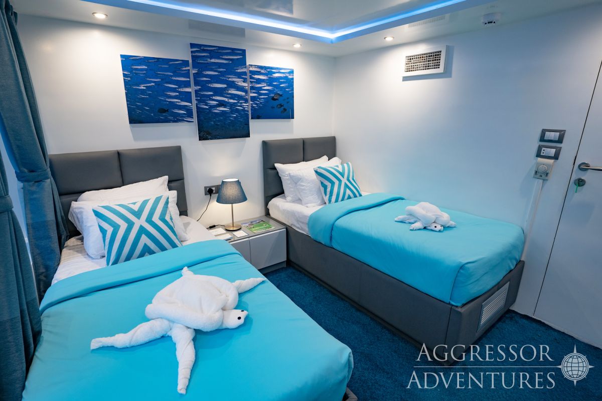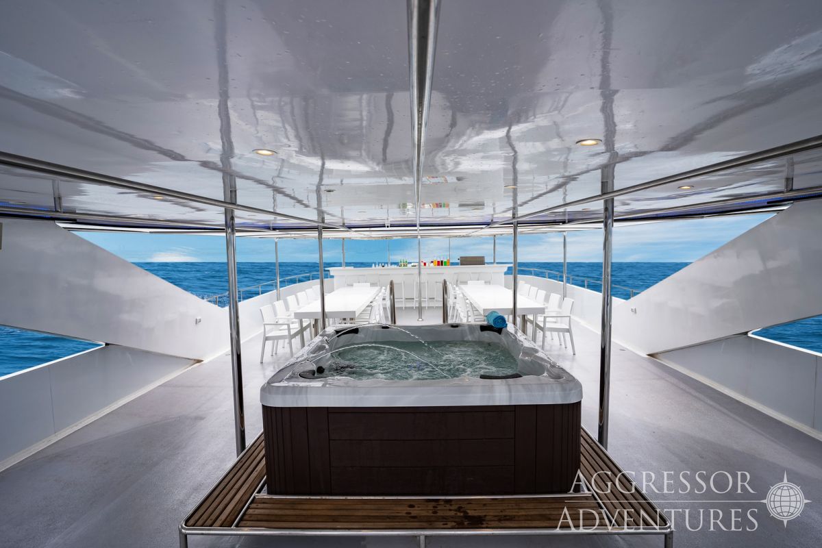 Na Tubbataha wybieramy się obecnie chyba najlepszą łodzią jaka tam pływa. Philippines Aggressor to 41 metrowa jednostka zbudowana z myślą o komforcie żeglugi i nurkowania. Wyposażona jest w 4 pokłady. Najwyższy przeznaczony jest na relaks z jacuzzi i miejscem do opalania a 3 pozostałe na część użytkową i mieszkalną. po 4 kabiny na każdym pokładzie. Kabiny na górnym pokładzie posiadają prywatne balkony oraz duże panoramiczne okna. Środkowe są nieznacznie mniejsze i posiadają duże panoramiczne okna. 4 kabiny w części dolnej są tych samych wymiarów co środkowe bez panoramicznego okna.