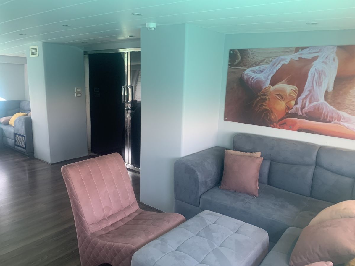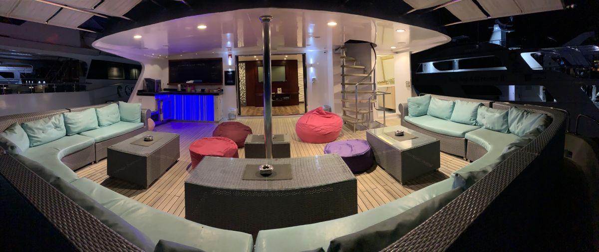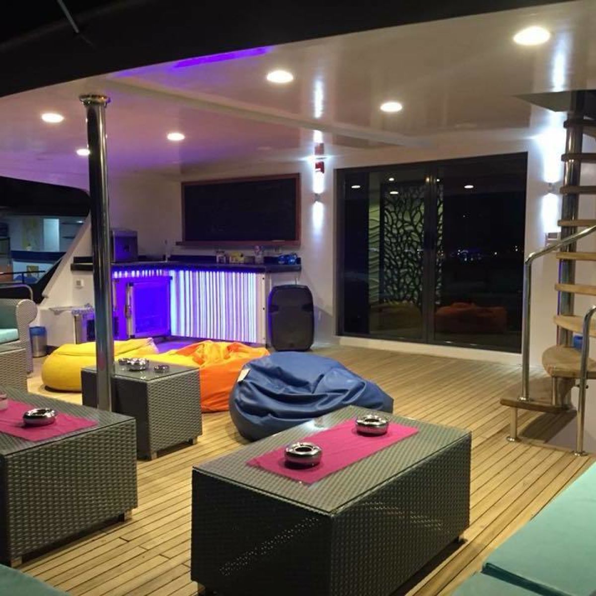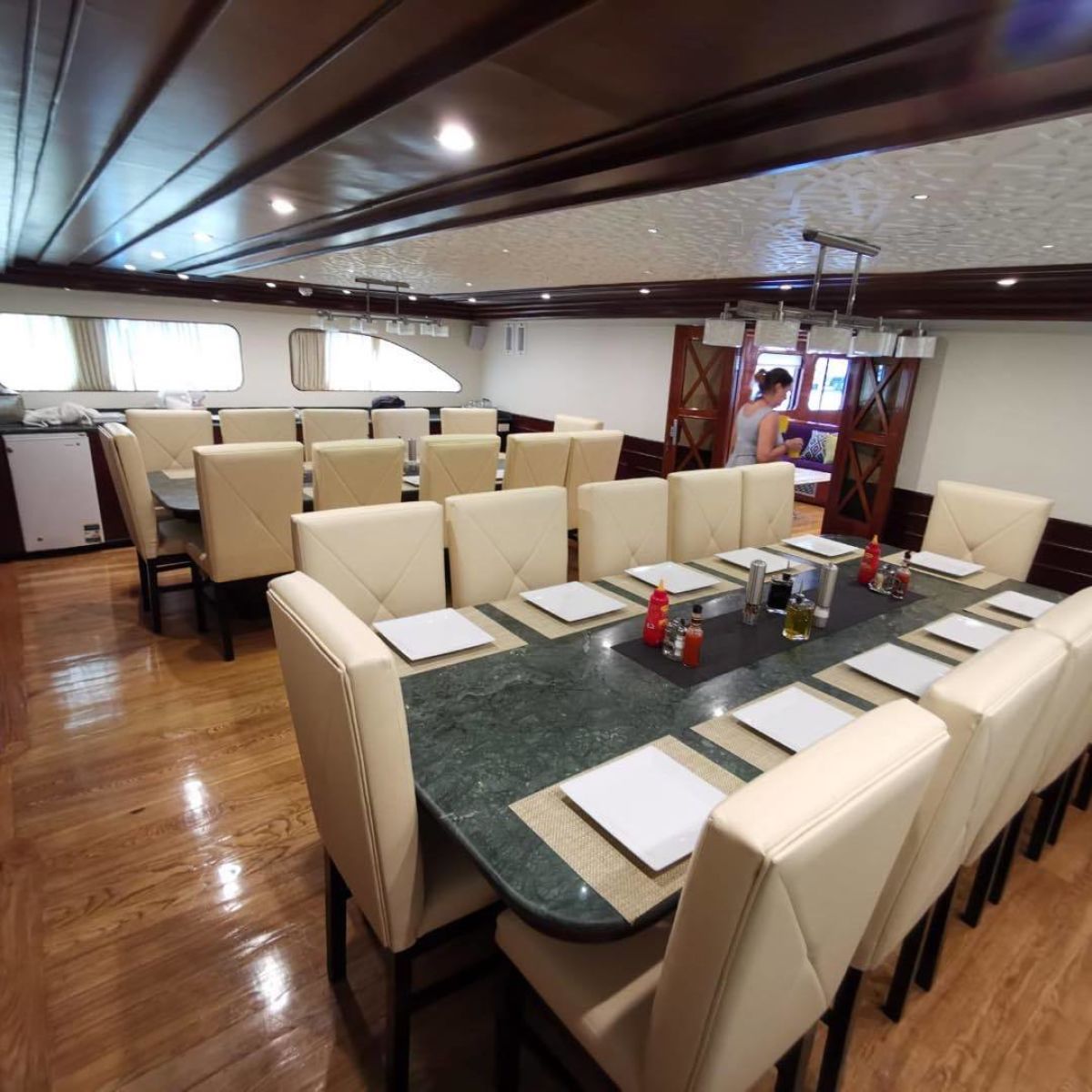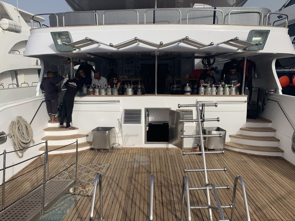 Każda kabina wyposażona jest w klimatyzację oraz prywatną toaletę. Pokład nurkowy jest bardzo przestronny a pokład rufowy z którego będziemy rozpoczynać nurkowania bardzo szeroki. Łódź posiada kilka pokładów słonecznych na najwyższym znajduje się Jacuzzi. Łódź robi wrażenie !!