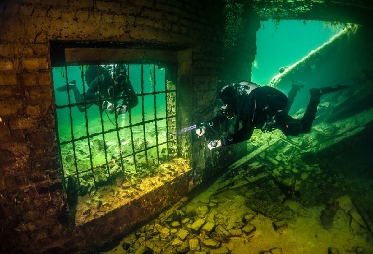 Obecnie spora część kompleksu znajduje się pod wodą tworząc jedno z ciekawszych nurkowisk Europy. W ubiegłym roku zrobiliśmy dla Was zwiad i wiemy, że warto podjąć trudy podróży i odwiedzić to tajemnicze i nieco przerażające miejsce.